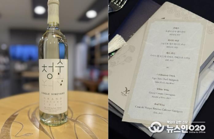 (뉴스인020 = 김성길 기자) 안산시는 시 농특산물 인증을 받은 그랑꼬또(Grand Coteau)의 ‘청수 싱글빈야드(2023) 와인이 2025 경주 아시아태평양경제협력체(APEC) 정상회의 공식 만찬주로 올랐다고 4일 밝혔다.