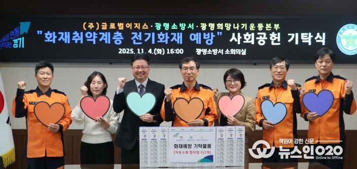 행사에는 이종충 광명소방서장을 비롯해 윤혜빈 글로벌이지스 본부장, 이세열 광명희망나기운동본부 본부장 등 관계자 20여 명이 참석했고, 참석자들은 기탁식 이후 취약계층 주거환경 개선과 전기화재 예방을 위한 협력 방안을 논의했다.