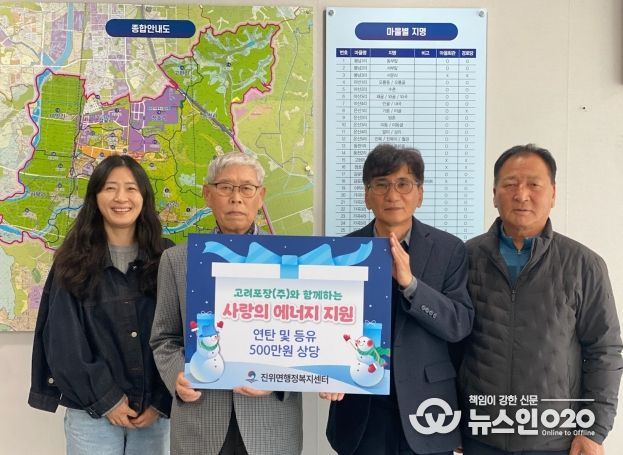 (뉴스인020 = 김성길 기자) 고려포장(주)가 지난 4일, 진위면 관내 취약계층의 겨울철 난방비 부담을 덜기 위해 연탄과 등유 등 500만 원 상당의 난방 연료를 후원하며 지역사회에 따뜻한 정을 전했다.