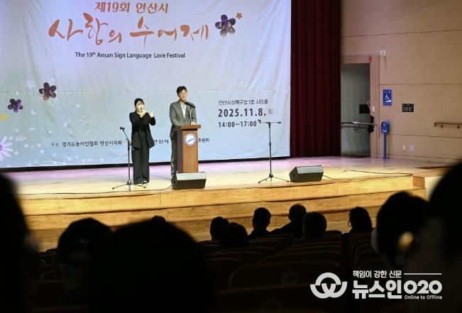 (뉴스인020 = 김성길 기자) 안산시는 지난 8일 상록구청 시민홀에서 경기도농아인협회 안산시지회 회원과 수어제 참가자 및 자원봉사자 등 200여 명이 참석한 가운데 ‘제19회 사랑의 수어제’를 개최했다고 10일 밝혔다.