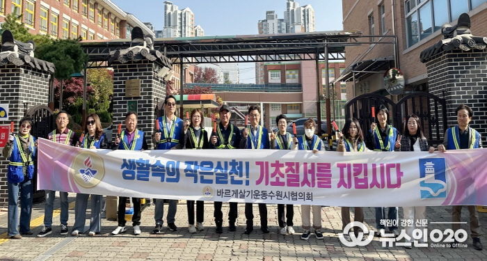 (뉴스인020 = 기자) 수원시 영통구 바르게살기운동협의회는 지난 11월 7일, 매탄동 산남초등학교 앞에서 ‘기초질서 확립 캠페인’을 실시했다. 이는 일상 속에서 질서와 배려를 실천하는 시민 문화를 조성하고, 더불어 깨끗하고 안전한 생활환경을 만들어가기 위한 취지다.