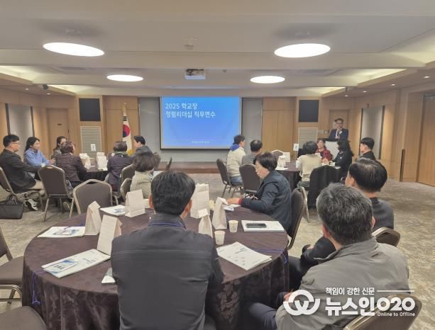 연수는 예산 스플라스 리솜에서 11월 3일~4일과 10일~11일 두 차례에 걸쳐 신규 임용 학교장 50여 명을 대상으로 진행됐다.