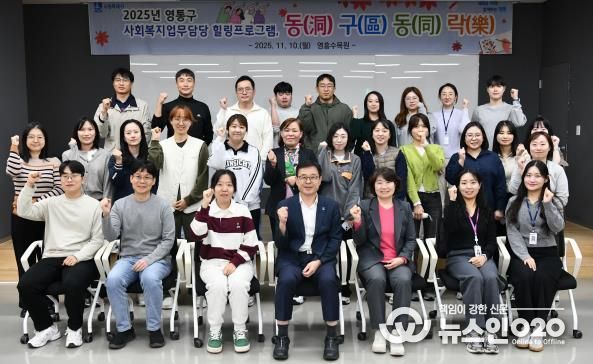 (뉴스인020 = 기자) `25년 11월 10일, 영통구는 영흥수목원에서 사회복지담당 공무원 힐링 프로그램, ‘동(洞)구(區)동(同)락(樂)’을 진행했다. 이 프로그램은 과중한 업무로 인한 정서적 피로와 스트레스를 해소하고 직원들의 심신 회복을 지원하기 위해 마련됐으며, 구/동 직원 30명이 참여했다.