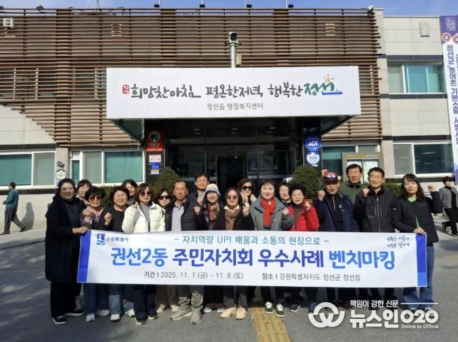 (뉴스인020 = 기자) 수원시 권선구 권선2동 주민자치회는 지난 7일, 강원특별자치도 정선군 정선읍을 방문해 자치사업 우수사례 벤치마킹을 실시했다.