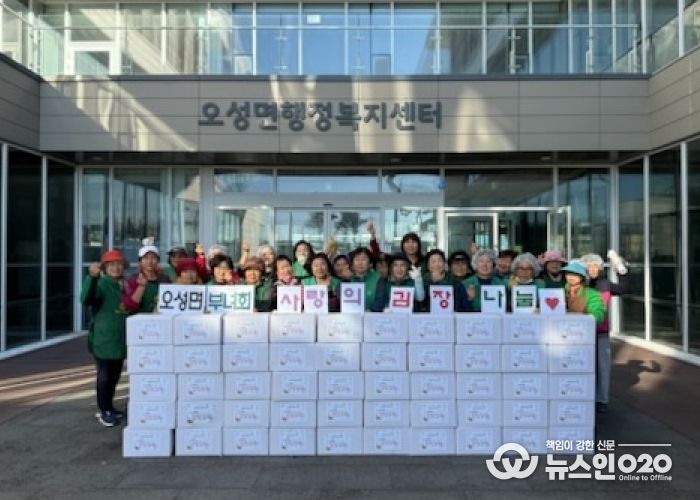 강성식 오성면장은 “추운 날씨에도 봉사에 참여하신 새마을부녀회원들과 직원들에게 감사드리며, 이웃과 함께하는 따뜻한 공동체가 될 수 있도록 지속적인 지원을 아끼지 않겠다”라고 밝혔다.