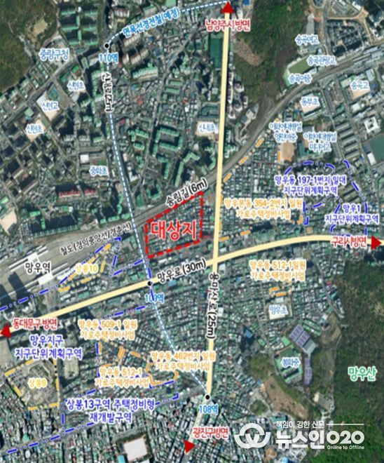 이번 계획은 제2종일반주거지역(7층 이하)을 제3종일반주거지역으로 전면 상향해 사업성을 높였다. 도로 여건도 크게 개선한다. 망우로63길을 기존 6m에서 11m로 확폭해 보차혼용 도로를 양측 보도를 갖춘 진출입로로 바꾼다. 망우로63길에는 공동이용시설을, 용마산로변에는 연도형 가로활성화 시설을 배치해 지역 주민이 이용할 수 있는 생활공간을 만든다.