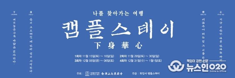 교구장 우석스님은 캠플스테이 슬로건 하신화심(下身華心)은 “몸을 낮추는 순간, 마음은 화엄의 꽃처럼 피어난다”라는 의미를 가지고 있다.” “추운 겨울 야외에서 1박 2일 캠플스테이 통해 몸을 낮추어 비울 때 마음의 빈공간을 채우고 새로운 시작을 할 수 있도록 돕는 것이 이 프로그램의 목표”라고 전했다.