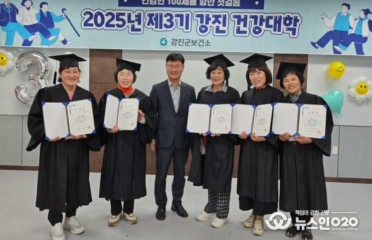 (뉴스인020 = 김성길 기자) 강진군이 지난 11일 보건소 3층 대회의실에서 수강생 30명이 참석한 가운데 ‘2025년 군민자치대학 제3기 건강대학 수료식’을 개최했다.