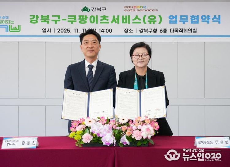같은 날 오후 2시에는 구청 다목적회의실에서 강북구와 쿠팡이츠서비스 간 업무협약식이 열렸다. 협약식에는 이순희 강북구청장과 강동진 쿠팡이츠서비스 상무이사를 비롯한 관계자들이 참석해 민관 상생 협력 의지를 다졌다. 두 기관은 앞으로 2년간 배달 종사자의 안전 확보와 근로여건 개선을 위한 다양한 지원 사업을 함께 추진할 계획이다.