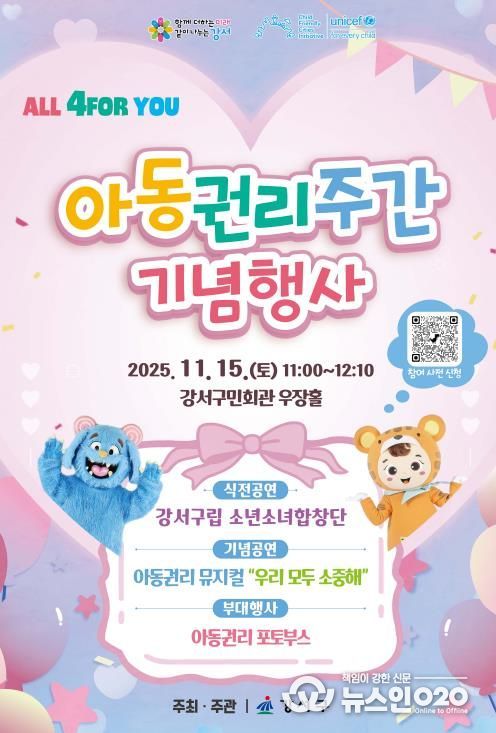 (뉴스인020 = 김성길 기자) 서울 강서구가 오는 15일부터 21일까지 일주일간 '2025년 아동권리주간'을 운영한다.