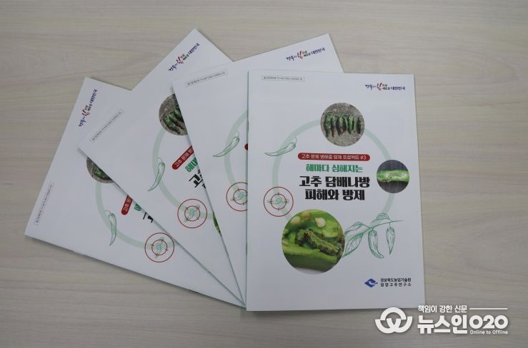 (뉴스인020 = 김성길 기자) 경상북도농업기술원은 기후변화로 인해 최근 증가하고 있는 고추 담배나방 피해에 대응하기 위해 ‘해마다 심해지는 고추 담배나방 피해와 방제’ 리플릿(병풍형 소책자)을 제작해 시군농업기술센터와 농가에 보급했다.
