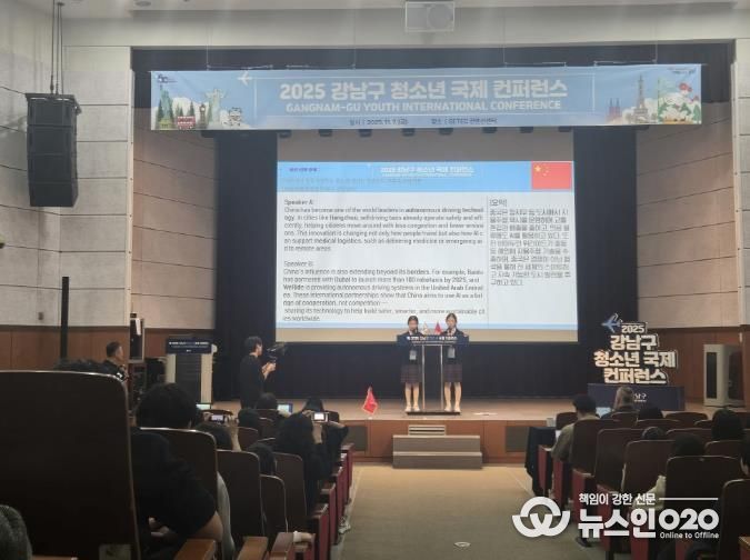 (뉴스인020 = 김성길 기자) 꿈이 모이는 도시, 미래를 그리는 강남구가 지난 11월 7일 SETEC 컨벤션센터에서 개최한 ‘청소년 국제 콘퍼런스’가 성공적으로 마무리됐다. 관내 중학생을 대상으로 생성형 인공지능(AI)과 영어를 활용해 글로벌 이슈에 대해 특정 국가의 입장을 대변하도록 구성된 이번 대회는 단순한 말하기 대회를 넘어 ‘AI 시대 세계시민 교육’의 새로운 출발점이 됐다는 평가를 받았다.