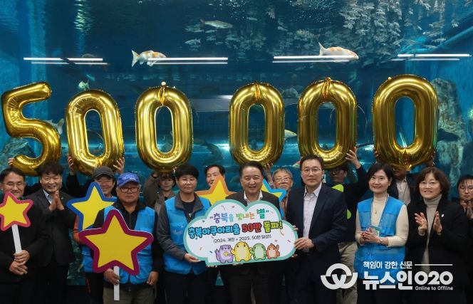 이날 행사에는 김영환 지사가 참석해 “충북아쿠아리움이 개관 이후 도민의 사랑과 관심 속에서 50만 명의 발걸음을 맞이하게 된 것은 직원들의 헌신과 도민의 성원이 함께 빚어낸 자랑스러운 결실”이라며 “앞으로도 아이들과 가족에게 꿈과 희망을 전하는 공간으로 발전하길 바란다”고 축하의 말을 전했다.