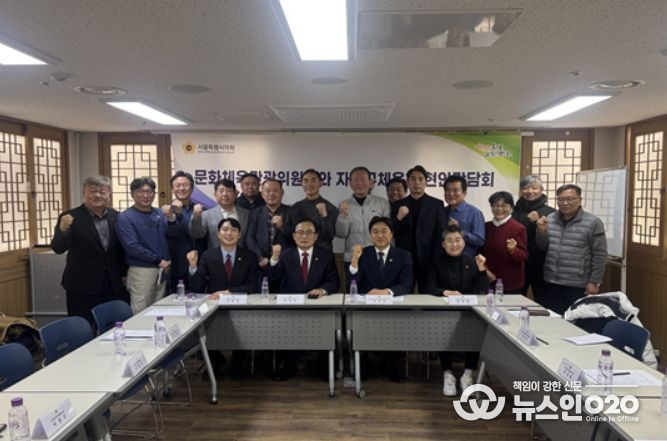 (뉴스인020 = 김성길 기자) 서울특별시의회 문화체육관광위원회 이종배 위원장 직무대리(국민의힘, 비례대표)를 비롯한 위원들은 11월18일 지역 체육 현안 해결을 위해 자치구 체육단체장들과 머리를 맞대며 현장의 목소리를 직접 듣는 간담회를 개최했다.