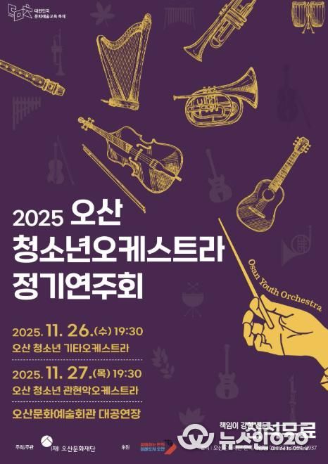 (뉴스인020 = 김성길 기자) 오산문화재단이 주최하고 오산시가 후원하는 ‘2025 오산 청소년 오케스트라 정기연주회’가 오는 11월 26일부터 27일까지 오산문화예술회관 대공연장에서 이틀간 개최된다. 공연은 전석 무료로 시민 누구나 관람할 수 있다.