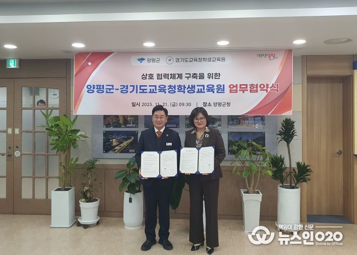 (뉴스인020 = 김성길 기자) 경기도교육청학생교육원이 21일 양평군청(군수 전진선)과 미래형 교육환경 조성 및 지역 사회에 기반한 상호 협력체제 구축을 위한 업무협약을 체결했다.