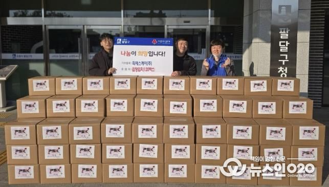 (뉴스인020 = 기자) 피에스케이 주식회사는 지난 22일, 동광원 등 관내 사회복지시설을 위해 김장김치 120박스를 팔달구청(구청장 이상균)에 기부했다.