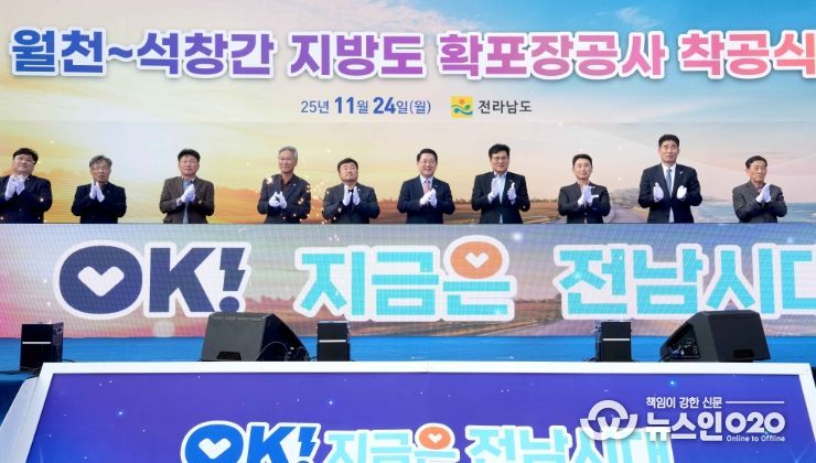 (뉴스인020 = 김성길 기자) 전라남도는 24일 함평 손불면 일원에서 ‘월천~석창 간 지방도 확포장공사’ 착공식을 열고 본격적으로 함평만 해안관광 일주도로 건설에 착수했다.