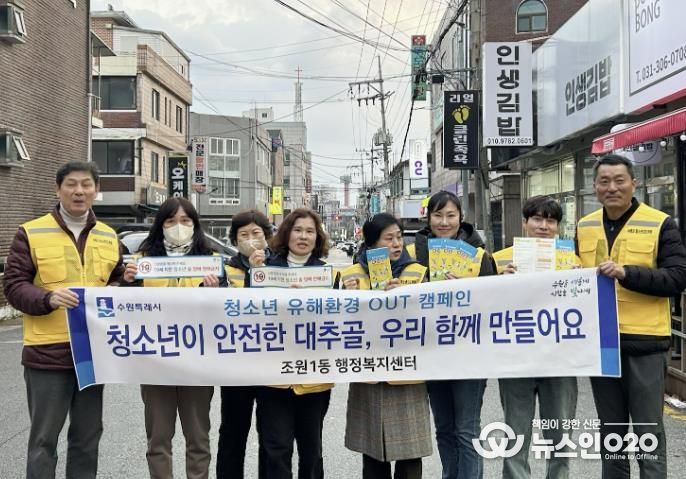 (뉴스인020 = 기자) 수원시 장안구 조원1동은 지난 27일 조원1동 상가 밀집 지역의 음식점과 주류 매장 등을 방문해 ‘청소년 유해환경 업소 계도활동’을 실시했다.