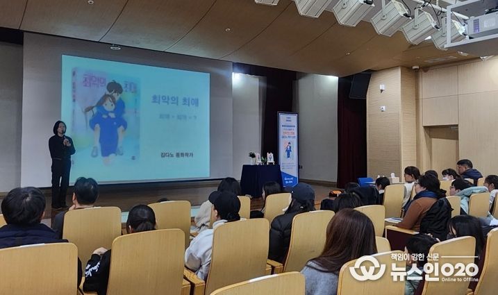 (뉴스인020 = 김성길 기자) 광명시는 지난 29일 소하도서관에서 ‘광명시민 책 한 권 함께 읽기’ 올해의 책 어린이 부문 선정도서 '최악의 최애'의 저자 김다노 작가 초청 강연회를 개최했다.