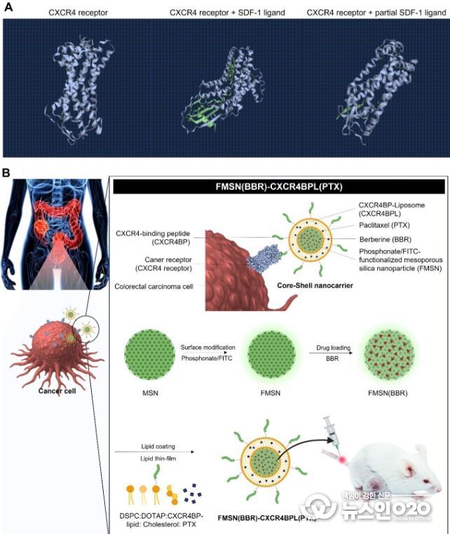 연구 성과는 Journal of Nanobiotechnology(피인용지수 12.6, JCR 상위 2.0%) 온라인판에 ‘AI-guided design of a CXCR4-targeted core-shell nanocarrier for co-delivery of berberine/paclitaxel in cancer therapy’라는 제목으로 게재됐다.
