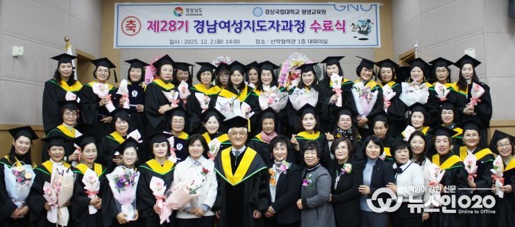 (뉴스인020 = 김성길 기자) 경상국립대학교 평생교육원(원장 김철호 제약공학과 교수)은 12월 2일 칠암캠퍼스 산학협력관 대회의실에서 제28기 경남여성지도자과정 수료식을 개최했다.
