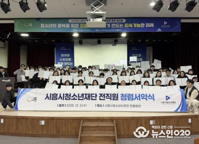 (뉴스인020 = 김성길 기자) 시흥시청소년재단은 지난 12월 3일 전 직원이 참석한 가운데 ‘청렴서약식’을 개최하고 투명하고 윤리적인 조직 운영을 위한 확고한 의지를 다졌다.