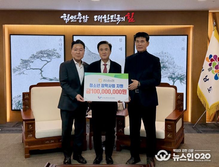 (뉴스인020 = 김성길 기자) 충남농협이 지역 인재 육성을 위해 올해도 1억 원을 쾌척했다. 2007년 첫 기부 이후 18년째 이어온 '지역 인재 키우기'의 연장선이다.
