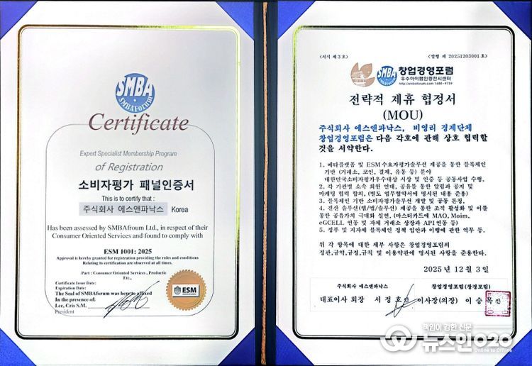 또한 12월3일 .(주)에스앤파낙스(서정호 대표)는 대한민국 소비자평가 단체 창업경영포럼과 전략적제휴 및 우수기업으로 인증 받으며 글로벌 시장으로 발돋움하는 계기를 마련했다.