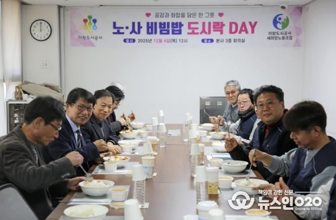 (뉴스인020 = 김성길 기자) 의왕도시공사는 12월 4일 노사 간 협력과 소통을 강화하고 건강한 조직문화 확산을 위한 ‘노·사 비빔밥 도시락데이’ 행사를 개최했다고 밝혔다.