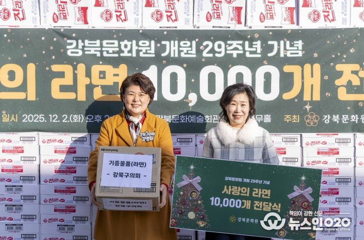 행사는 라면 전달식을 시작으로 설장구 식전공연, 유공자 표창, 문화공연 등 다양한 프로그램으로 채워졌다. 특히 올해는 강북미술협회가 20여 점의 작품을 기증해 ‘그림 기부전’을 함께 열며, 문화와 나눔을 결합한 새로운 형태의 기부가 주목을 받았다.