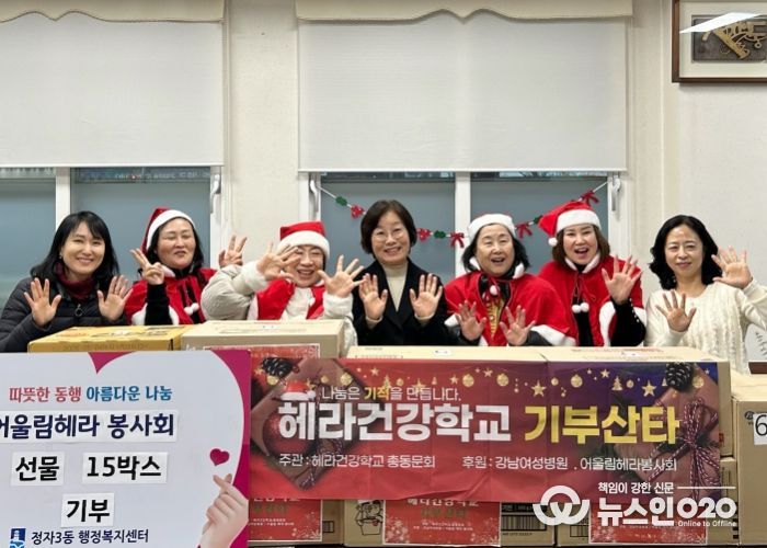 (뉴스인020 = 기자) 수원 어울림헤라봉사회는 지난 6일 연말을 맞아 수원시 장안구 정자3동에 선물 15박스를 후원했다. 이번 후원물품은 연말을 앞두고 도움이 필요한 이웃들에게 소중히 전달될 예정이다.