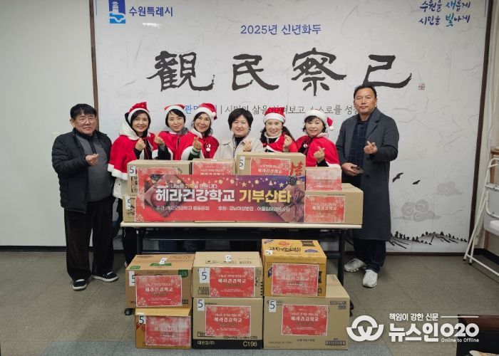 (뉴스인020 = 기자) 수원시 권선구 헤라건강학교는 기부산타 나눔 활동의 일환으로 취약계층을 위해 식품 14박스를 기부했다. 이번 후원물품은 지역 내 저소득 위기가구 14 가구에 전달되어 따뜻한 연말 분위기 속에서 실질적인 생활 지원에 활용될 예정이다.