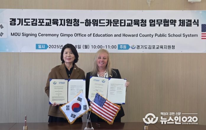 (뉴스인020 = 김성길 기자) 경기도김포교육지원청이 미국 메릴랜드주의 하워드카운티교육청(Howard County Public School System)과 국제교류협력 업무협약을 체결하며 글로벌 교육 네트워크 구축에 나섰다. 이번 협력은 양 기관 간 신뢰 기반을 마련하고, 학생·교사 교류 및 교육행정 시스템 공유를 통해 김포교육의 국제적 위상을 높였다는 점에서 의미를 더했다.