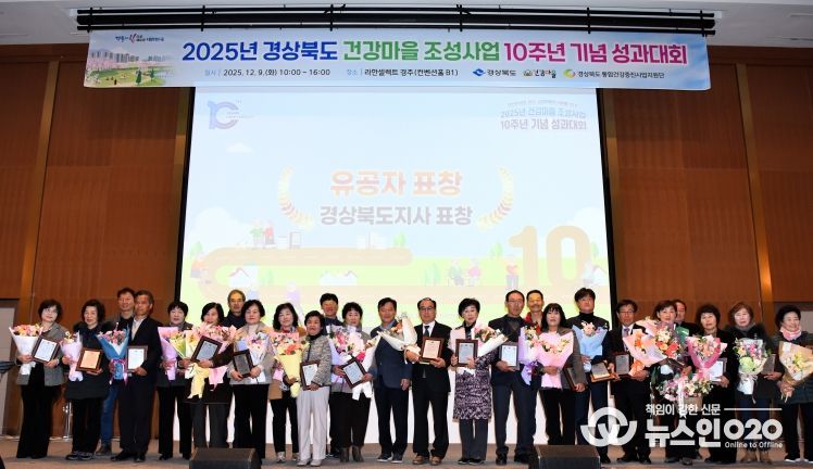(뉴스인020 = 김성길 기자) 경상북도는 9일 경주 라한셀렉트호텔 컨벤션 홀에서 32개 건강마을 주민과 시군 보건소 관계자와 경상북도 통합건강증진사업지원단 교수 등 600여 명이 참석한 가운데 ‘2025년 건강마을 조성사업 10주년 기념 성과대회’를 개최했다.