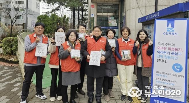 (뉴스인020 = 기자) 수원시 영통구 영통1동 행정복지센터는 지난 11일, 영통1동 지역사회보장협의체 주관으로 겨울철 복지사각지대 발굴 캠페인을 추진했다.