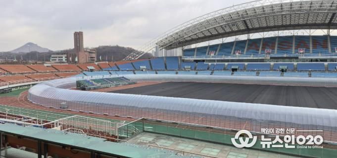 (뉴스인020 = 김성길 기자) 안산도시공사는 겨울철 시민들이 안전하게 실외 운동을 즐길 수 있도록 안산 와~스타디움 육상트랙에 비닐하우스를 설치하고 내년 2월 초까지 운영한다고 12일 밝혔다.