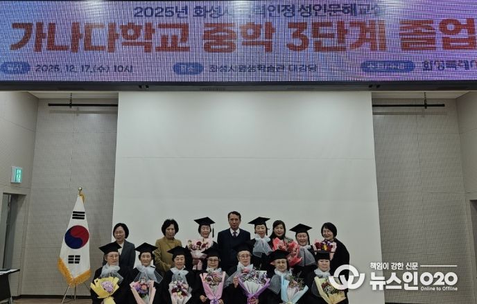 (뉴스인020 = 김성길 기자) 화성특례시는 17일 화성시평생학습관에서 ‘2025년 학력인정 성인문해교실 가나다학교 졸업식’을 개최했다.