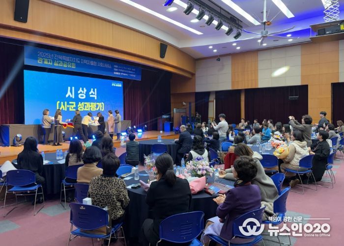 (뉴스인020 = 김성길 기자) 전북특별자치도는 17일 도청에서 도‧시군 담당 공무원과 사회서비스 제공기관 관계자 등 200여 명이 참석한 가운데 ‘2025년 지역자율형 사회서비스 투자사업 성과 공유회’를 개최하고, 한 해 동안의 사업 추진 성과와 향후 추진 방향을 공유했다.