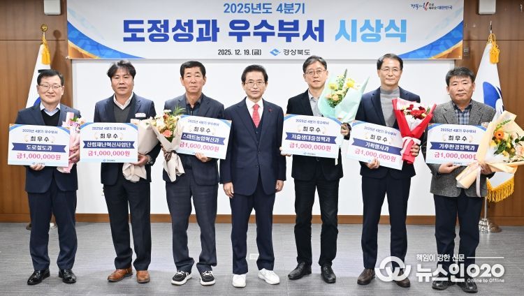 (뉴스인020 = 김성길 기자) 경상북도는 19일 호국실에서 2025년 4분기 동안 탁월한 성과를 거둔 6개 부서를 ‘우수부서’로 선정해 시상했다.