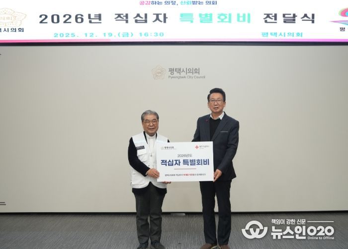 (뉴스인020 = 김성길 기자) 평택시의회는 19일, 평택시의회 3층 간담회장에서 대한적십자사 경기도지사에 적십자 특별회비 전달식을 가지고 이웃사랑 실천에 동참했다.
