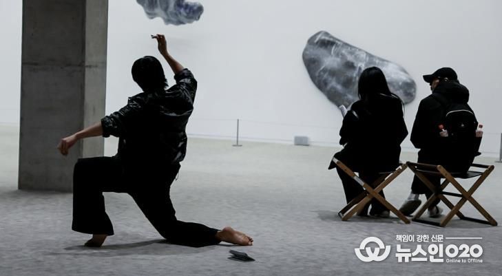 지난 11월 29일에는 코어레주(Corelage, 김민혁, 정성택, 양설희)가 참여한 첫 번째 프로그램 '댄스 콜라주'가 진행됐다. 무용을 기반으로 한 세 명의 퍼포머가 전시 작품에서 영향을 받아 제작한 사운드를 중심으로 즉석 퍼포먼스를 펼쳤다.