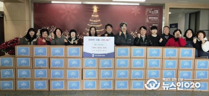 (뉴스인020 = 기자) 지난 19일, 수원제일교회와 수원제일복지재단은 크리스마스를 맞아 어려운 이웃을 위한 사랑의 선물 세트 50박스를 수원시 팔달구 지동(동장 정순화)에 전달했다.