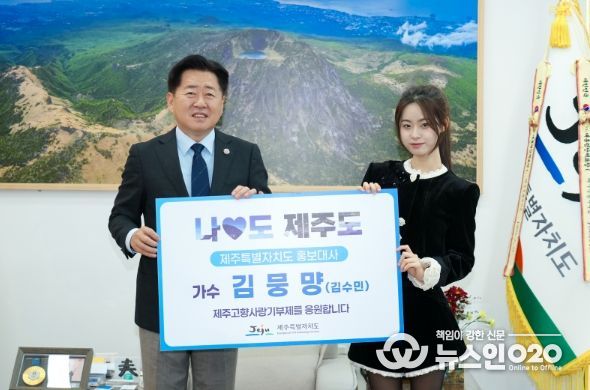 (뉴스인020 = 김성길 기자) 제주특별자치도는 22일 오전 제주도청 집무실에서 가수 겸 유튜버 김뭉먕 씨를 제주도 홍보대사로 위촉했다고 밝혔다.