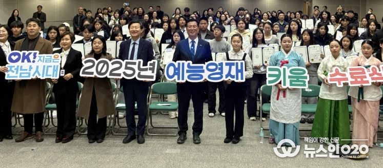 (뉴스인020 = 김성길 기자) 전라남도는 도청 왕인실에서 2025년 예능영재 키움 수료식을 지난 22일 열어 1년간의 교육과정을 성실히 이수한 예능영재 학생들을 격려했다.