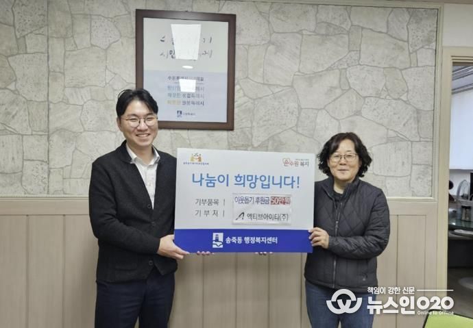 최선정 송죽동장은 “매년 잊지 않고 따뜻한 나눔을 실천해 주시는 ㈜엑티브아이티에 깊이 감사드린다”며 “기탁해 주신 후원금은 도움이 꼭 필요한 이웃들에게 소중히 전달하겠다”고 전했다.