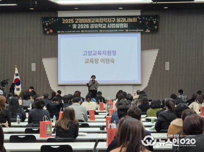 (뉴스인020 = 김성길 기자) 경기도고양교육지원청은 2025년 12월 23일 킨텍스 제2전시장(401~403호)에서‘2025 고양미래교육협력지구 성과나눔회 및 2026 공유학교 사업설명회’를 개최했다. 이날 행사에는 고양 관내 유·초·중·고 교사, 학교관리자, 학생, 협력 마을활동가 등 총 400여 명이 참석해 고양교육의 미래를 함께 모색했다.