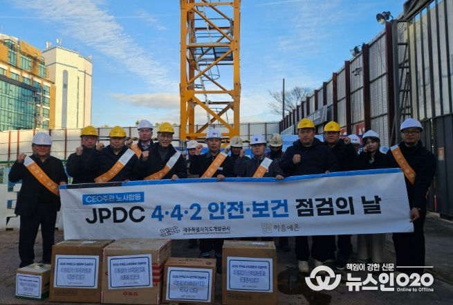(뉴스인020 = 김성길 기자) 제주특별자치도개발공사(사장 백경훈)는 지난 23일 겨울철 한파로 인한 건설현장 근로자의 안전사고를 예방하고, 안전한 작업 여건을 조성하기 위해 혹한기 한랭질환 예방활동과 CEO 주관 노사합동 4·4·2 안전점검을 실시했다.