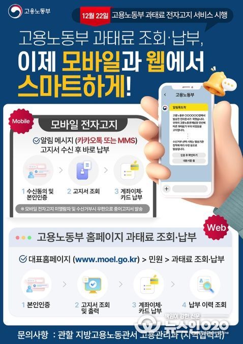 (뉴스인020 = 김나현 기자) 고용노동부 과태료 조회·납부, 이제 모바일과 웹에서 스마트하게!