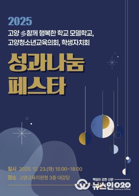 (뉴스인020 = 김성길 기자) 고양교육지원청은 12월 23일 고양교육지원청 3층 대강당에서 ‘2025 고양 다함께 행복한 학교’모델학교 및 고양청소년교육의회·학생자치회 성과나눔 페스타를 개최했다.